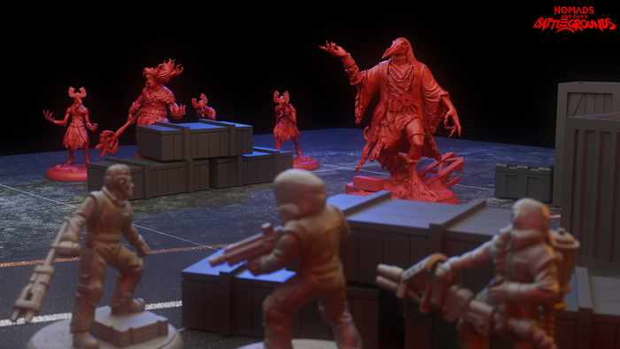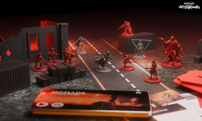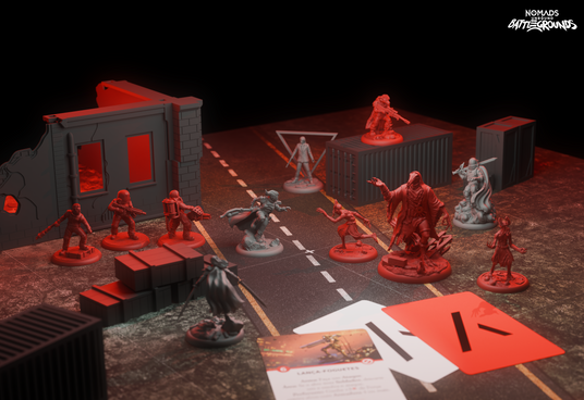 In this standalone game, players can quickly set up skirmish battles of 5v5 (or more!) miniatures or standees with a deck of dedicated cards. You can use all models from Nomads Unbound or bring any other figure or standee from your favorite game, 5E, Trench Crusade, OnePageRules, Warhammer; it doesn’t matter. The system will allow you to quickly convert any figure visually, associating abilities, weapons, and other characteristics. It’s the Nomad’s multiverse after all, so anything goes!